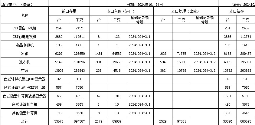2024.10.23回收拆解統(tǒng)計(jì)表