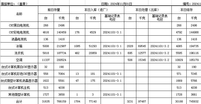2024.11.01回收拆解統(tǒng)計(jì)表