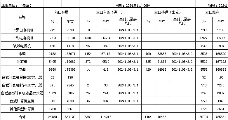 2024.11.06回收拆解統(tǒng)計(jì)表