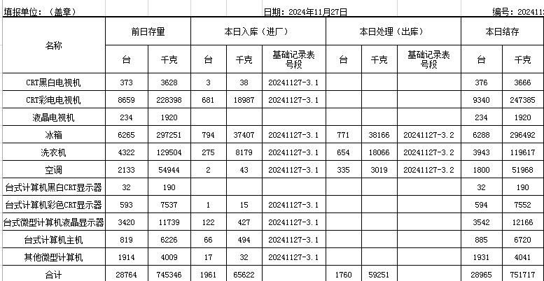 2024.11.26回收拆解統(tǒng)計(jì)表