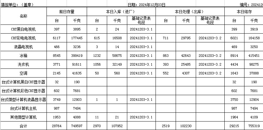 2024.12.04回收拆解統(tǒng)計(jì)表