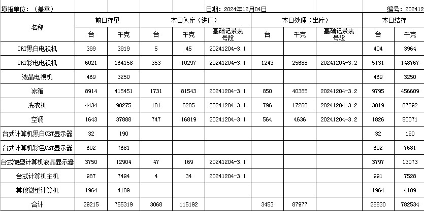 2024.12.04回收拆解統(tǒng)計(jì)表