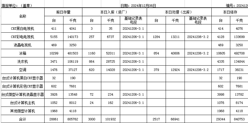 2024.12.06回收拆解統(tǒng)計表