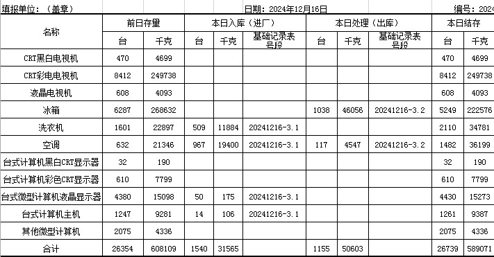 2024.12.16回收拆解統(tǒng)計(jì)表