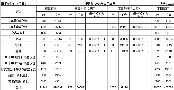 2024.12.21回收拆解統(tǒng)計(jì)表