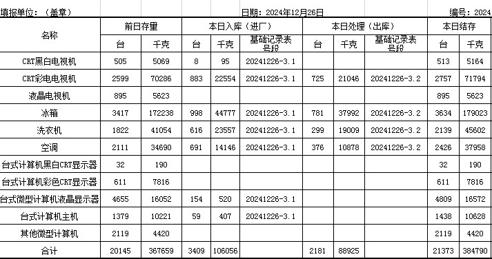 2024.12.26回收拆解統(tǒng)計(jì)表