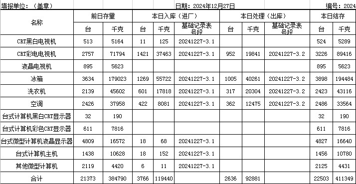 2024.12.27回收拆解統(tǒng)計(jì)表