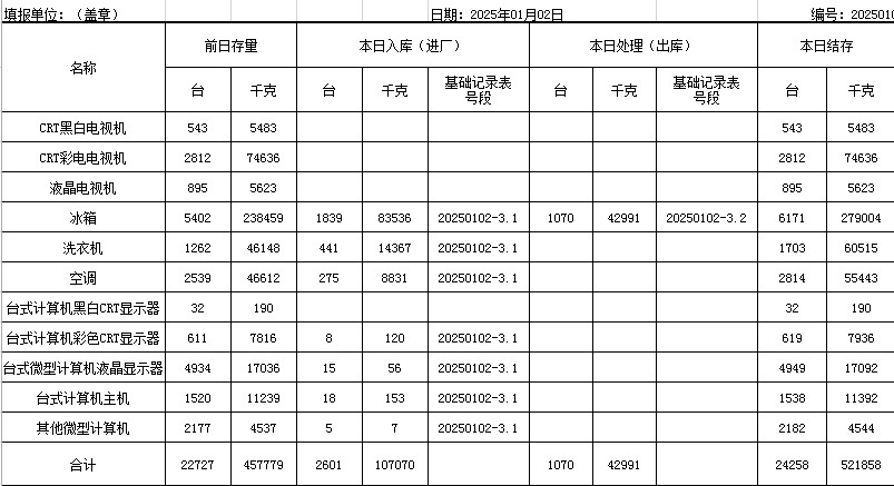 2025.01.02回收拆解統(tǒng)計表