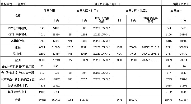 2025.01.05回收拆解統(tǒng)計(jì)表