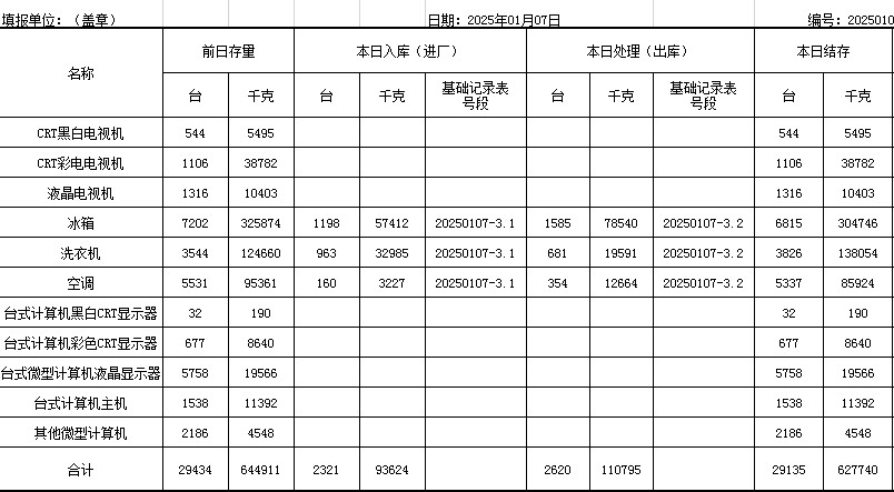 2025.01.07回收拆解統(tǒng)計表