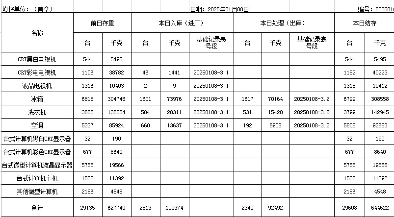 2025.01.08回收拆解統(tǒng)計(jì)表