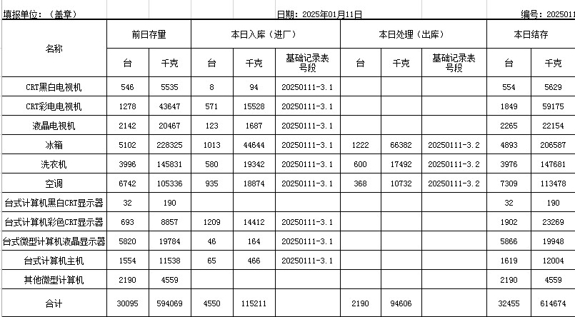 2025.01.11回收拆解統(tǒng)計(jì)表
