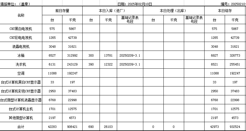 2025.02.09回收拆解統(tǒng)計(jì)表