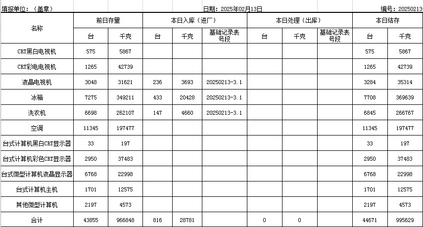 2025.02.13回收拆解統(tǒng)計(jì)表
