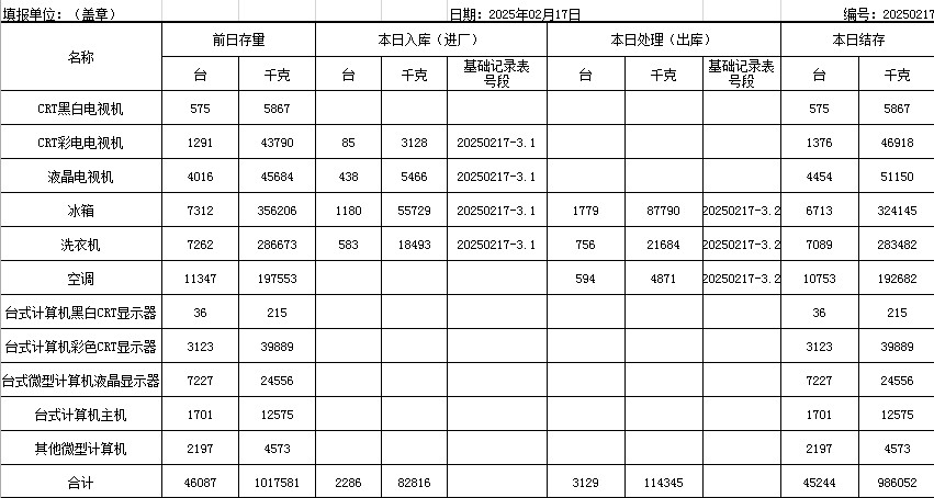 2025.02.17回收拆解統(tǒng)計(jì)表