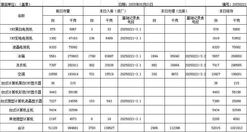 2025.02.21回收拆解統(tǒng)計(jì)表
