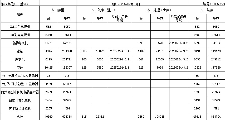 2025.02.24回收拆解統(tǒng)計(jì)表