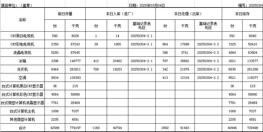 2025.03.04回收拆解統(tǒng)計(jì)表