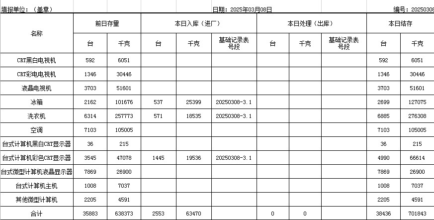 2025.03.08回收拆解統(tǒng)計表