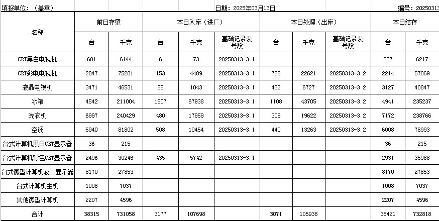 2025.03.13回收拆解統(tǒng)計(jì)表