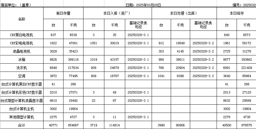 2025.03.28回收拆解統(tǒng)計(jì)表