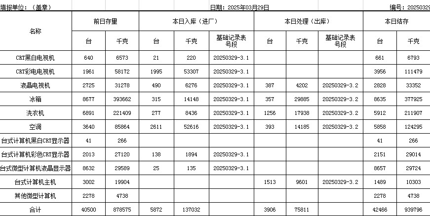 2025.03.29回收拆解統(tǒng)計(jì)表