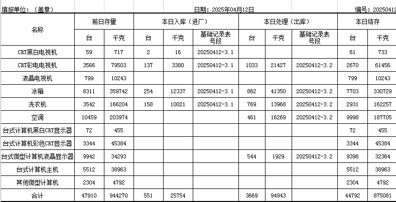 2025.04.12回收拆解統(tǒng)計(jì)表