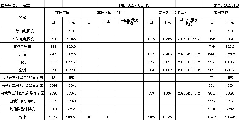 2025.04.13回收拆解統(tǒng)計(jì)表