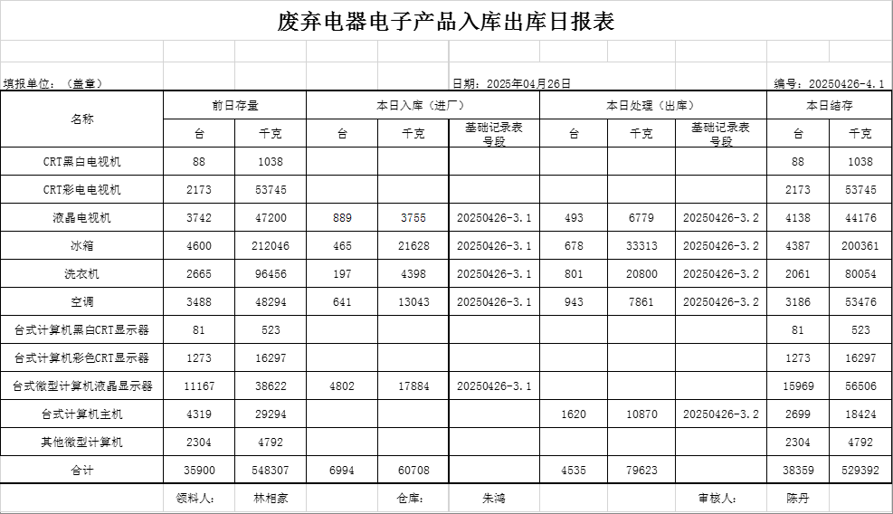 2025.04.26回收拆解統(tǒng)計(jì)表