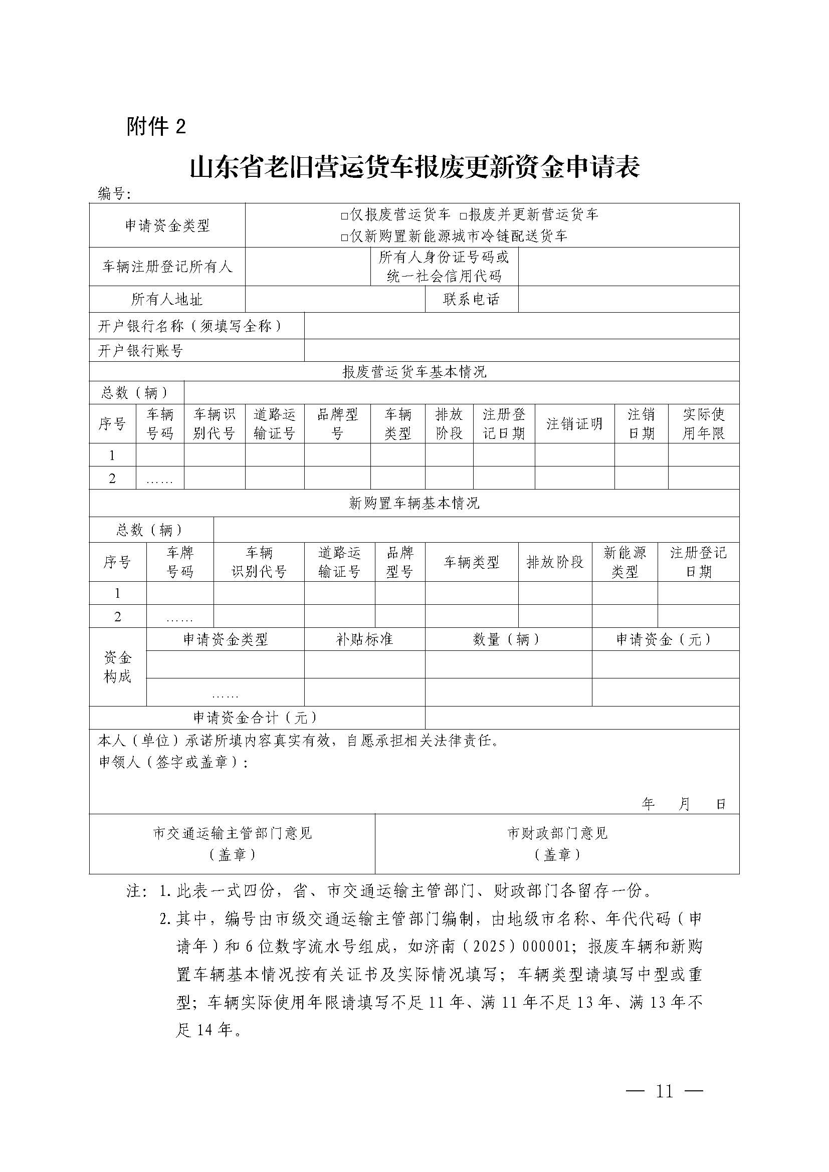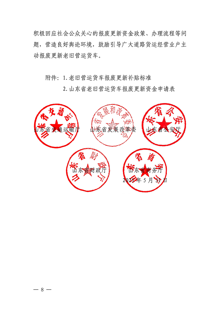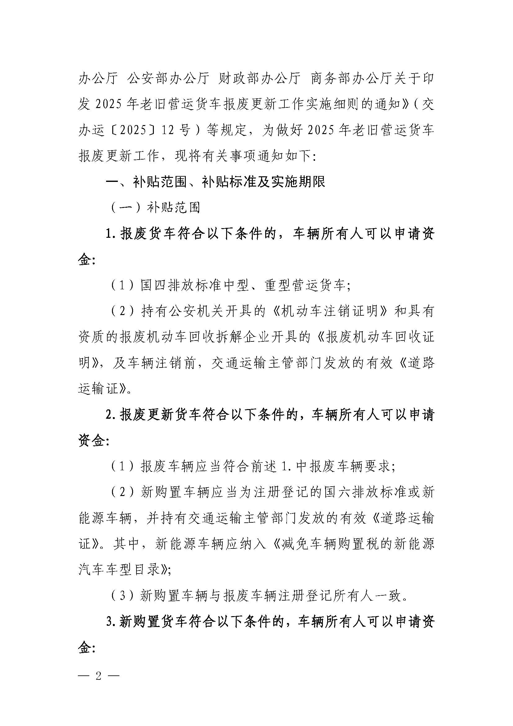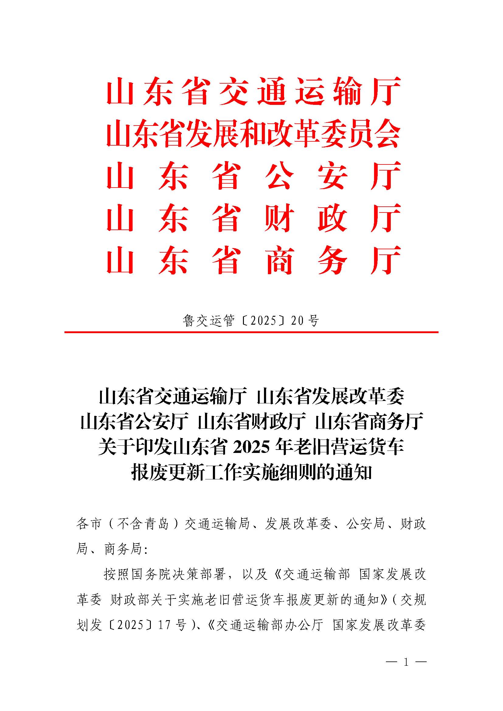 山東省交通運(yùn)輸廳等五部門關(guān)于印發(fā)《山東省2025年老舊營(yíng)運(yùn)貨車報(bào)廢更新工作實(shí)施細(xì)則》的通知