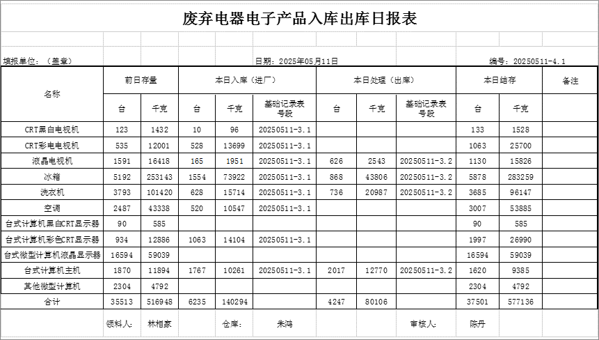 2025.05.11回收拆解統(tǒng)計(jì)表