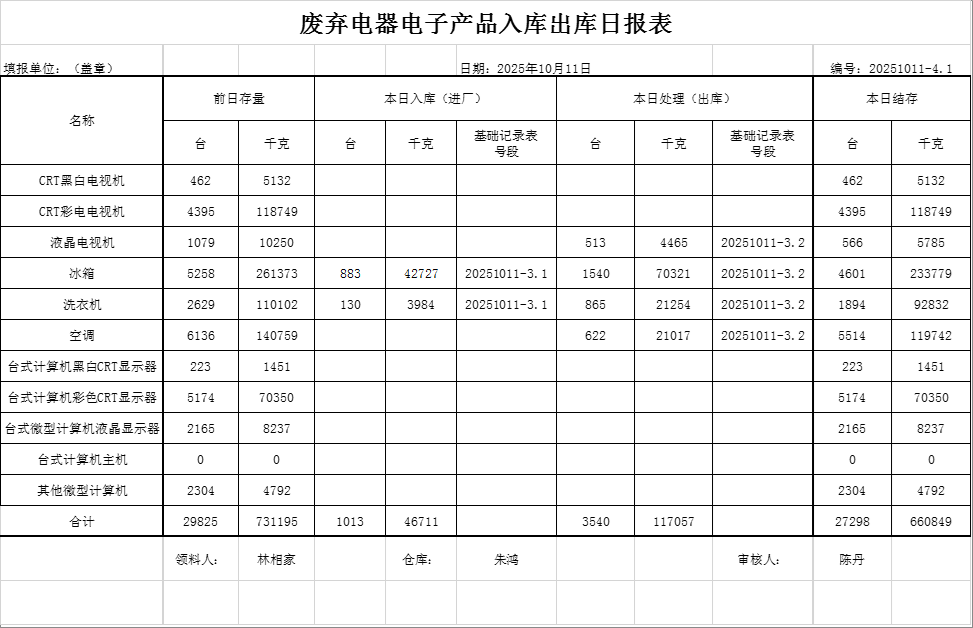2025.10.11回收拆解統(tǒng)計(jì)表