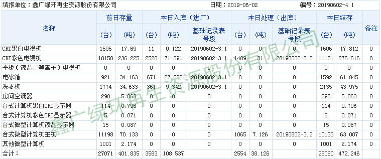 2019.06.01回收拆解統(tǒng)計(jì)表