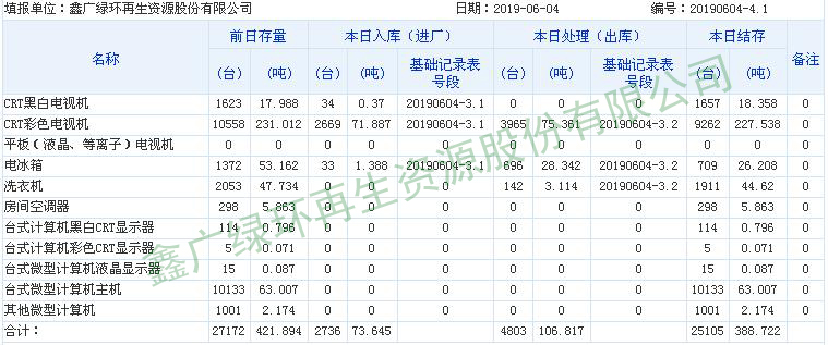 2019.06.04回收拆解統(tǒng)計(jì)表