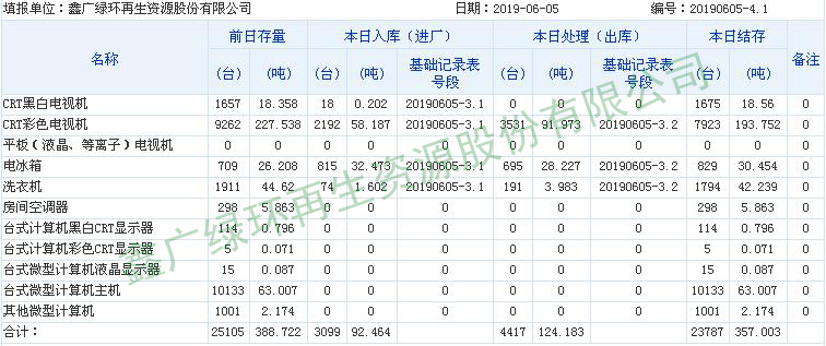 2019.06.05回收拆解統(tǒng)計(jì)表