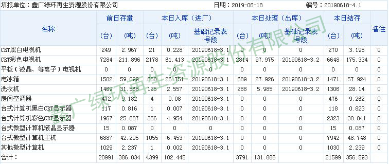 2019.06.18回收拆解統(tǒng)計(jì)表