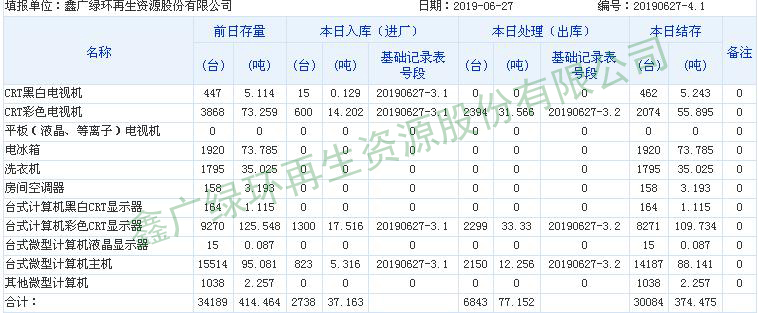 2019.06.27回收拆解統(tǒng)計(jì)表