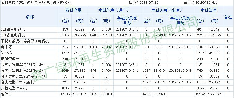 2019.07.13回收拆解統(tǒng)計表