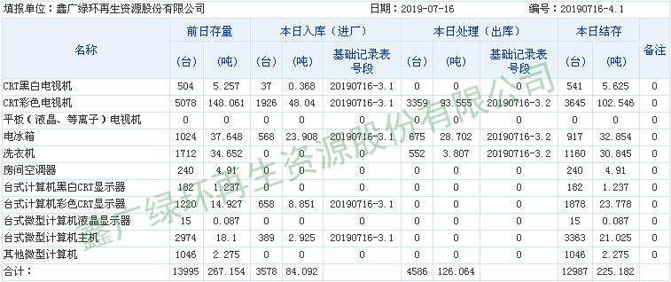2019.07.16回收拆解統(tǒng)計(jì)表