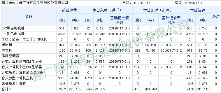 2019.07.17回收拆解統(tǒng)計(jì)表