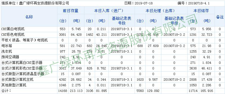 2019.07.18回收拆解統(tǒng)計(jì)表
