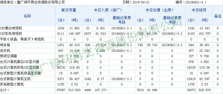 2019.09.21回收拆解統(tǒng)計(jì)表