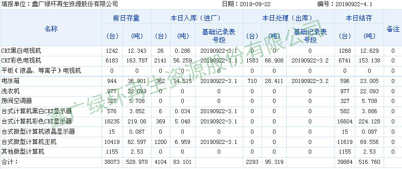 2019.09.22回收拆解統(tǒng)計表