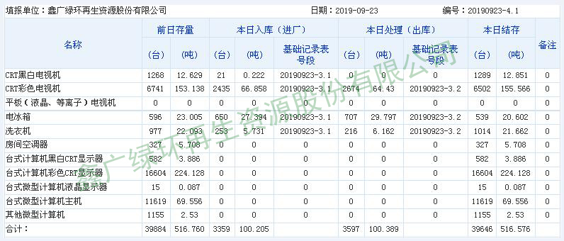 2019.09.23回收拆解統(tǒng)計(jì)表