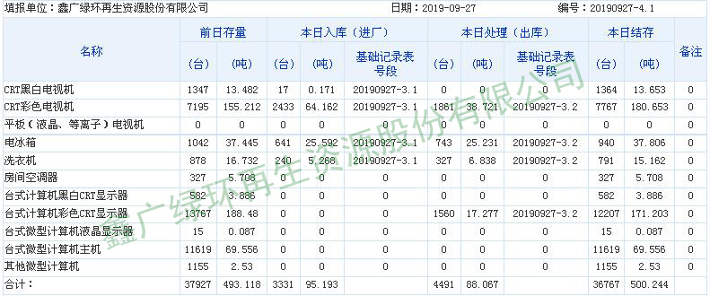 2019.09.27回收拆解統(tǒng)計(jì)表