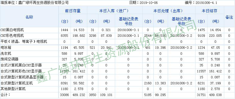 2019.10.06回收拆解統(tǒng)計表
