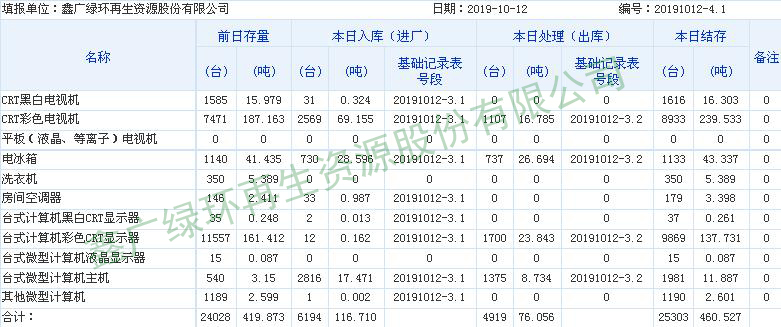 2019.10.12回收拆解統(tǒng)計(jì)表