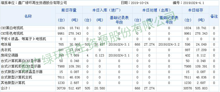2019.10.24回收拆解統(tǒng)計(jì)表
