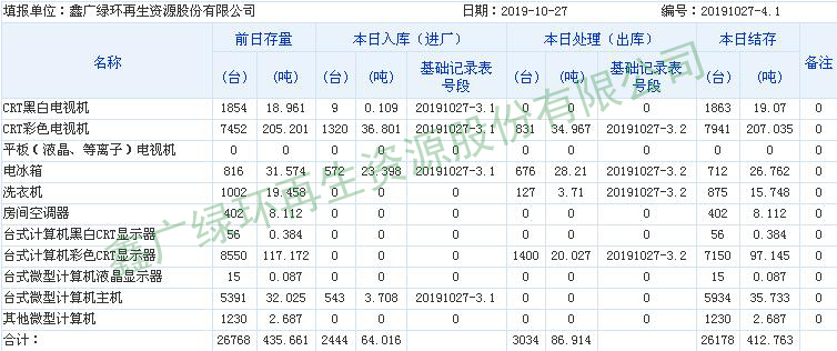 2019.10.27回收拆解統(tǒng)計(jì)表