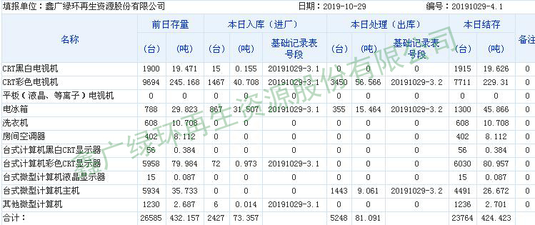 2019.10.29回收拆解統(tǒng)計(jì)表
